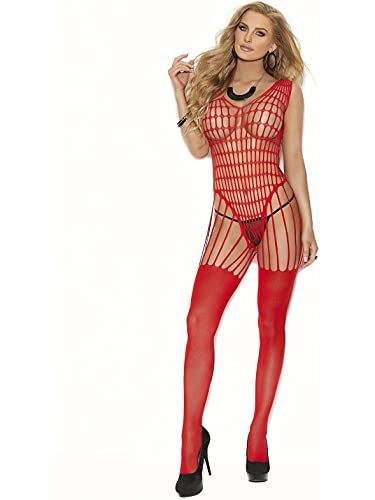Elegant Moments Em-12021 Crochet Net Bodystocking O/S/Red