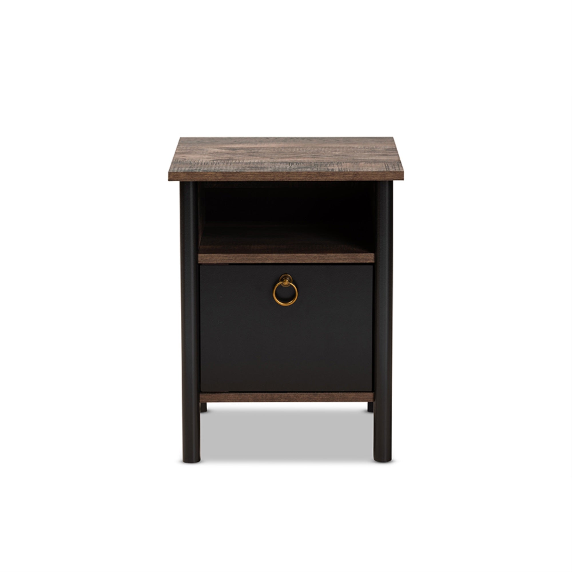 Baxton Studio Vaughan Modern And Contemporary Two-Tone Rustic Brown And Black Finished Wood Nightstand