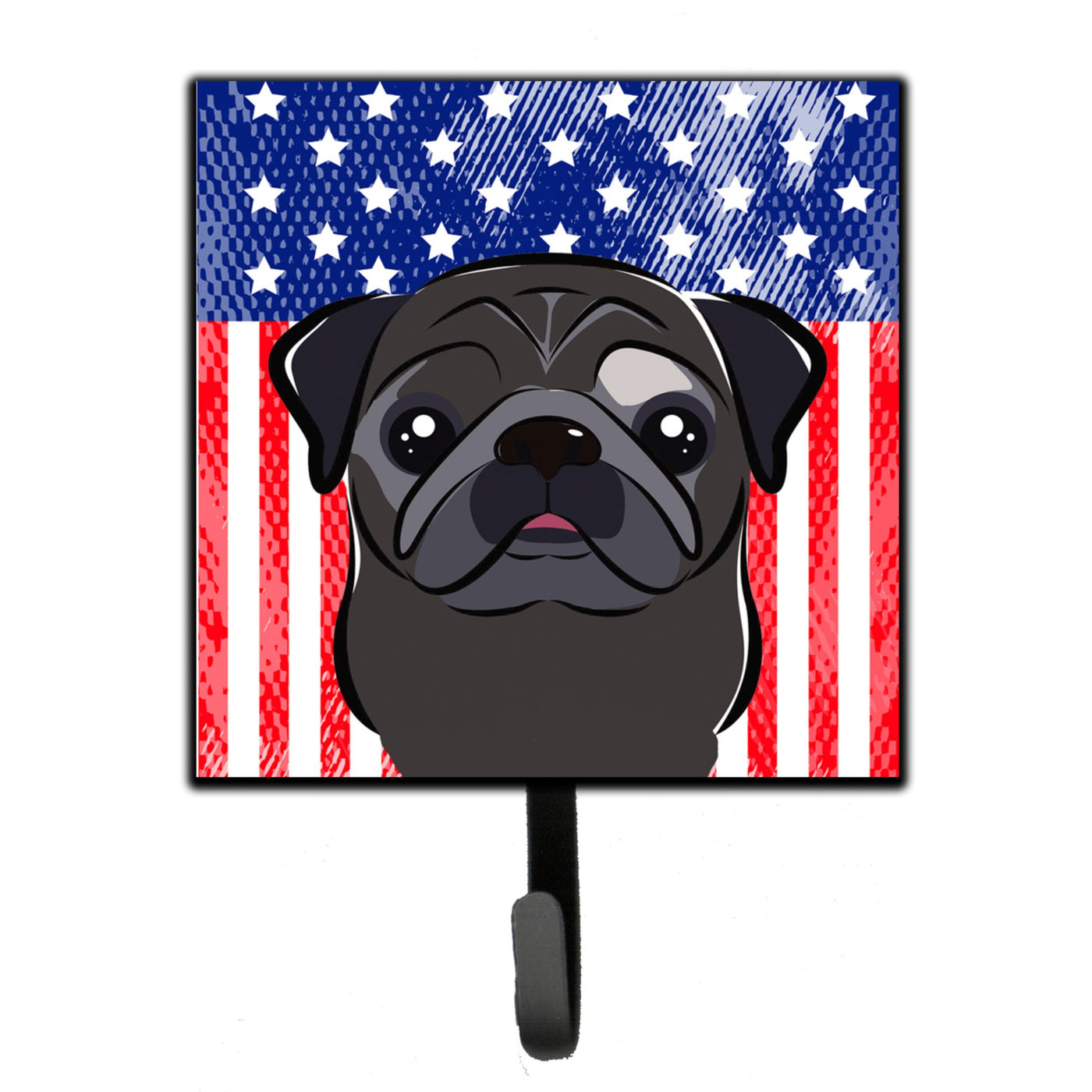 Caroline'S Treasures American Flag And Black Pug Leash Or Key Holder Hooks, Multicolor