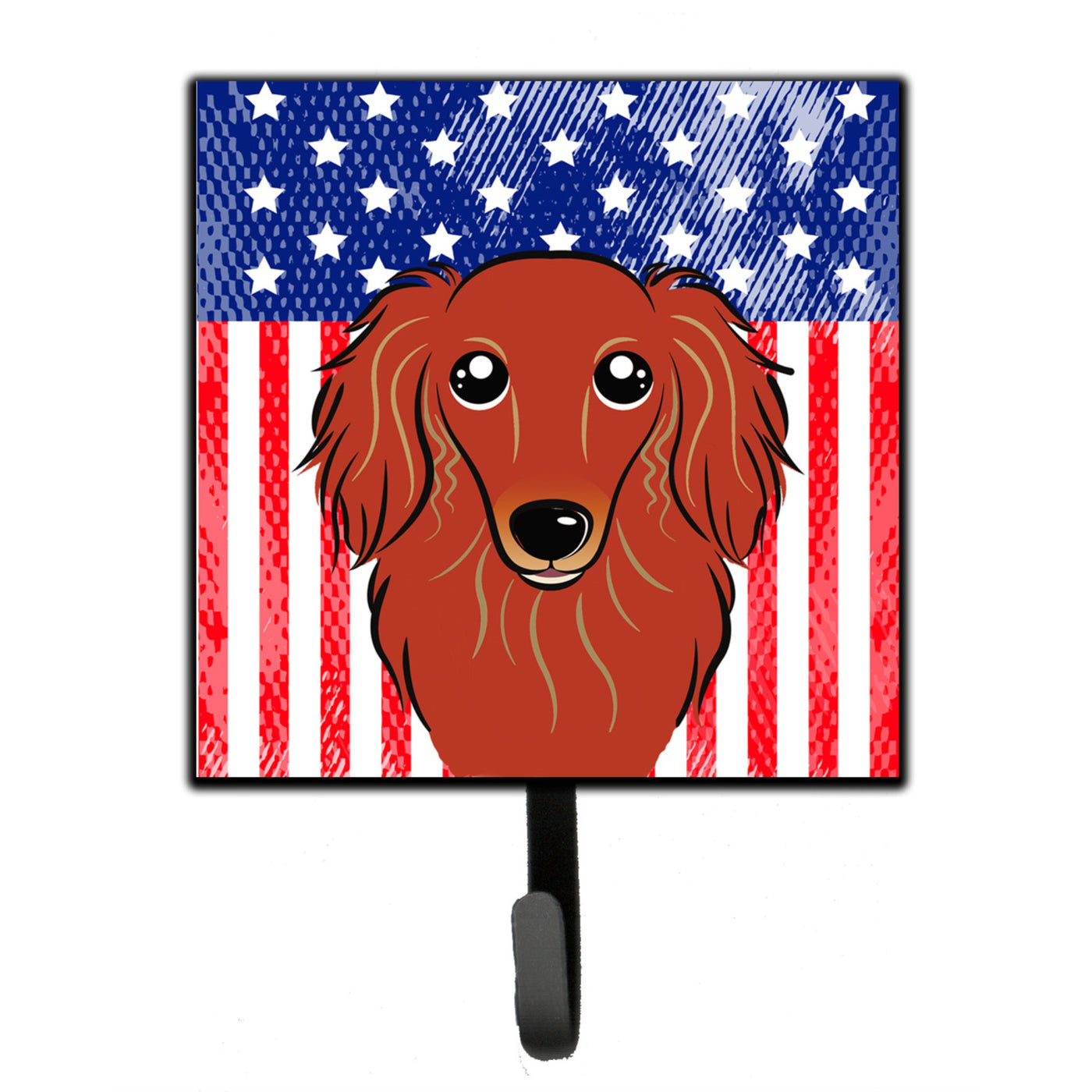 Caroline'S Treasures American Flag And Longhair Red Dachshund Leash Or Key Holder Hooks, Multicolor