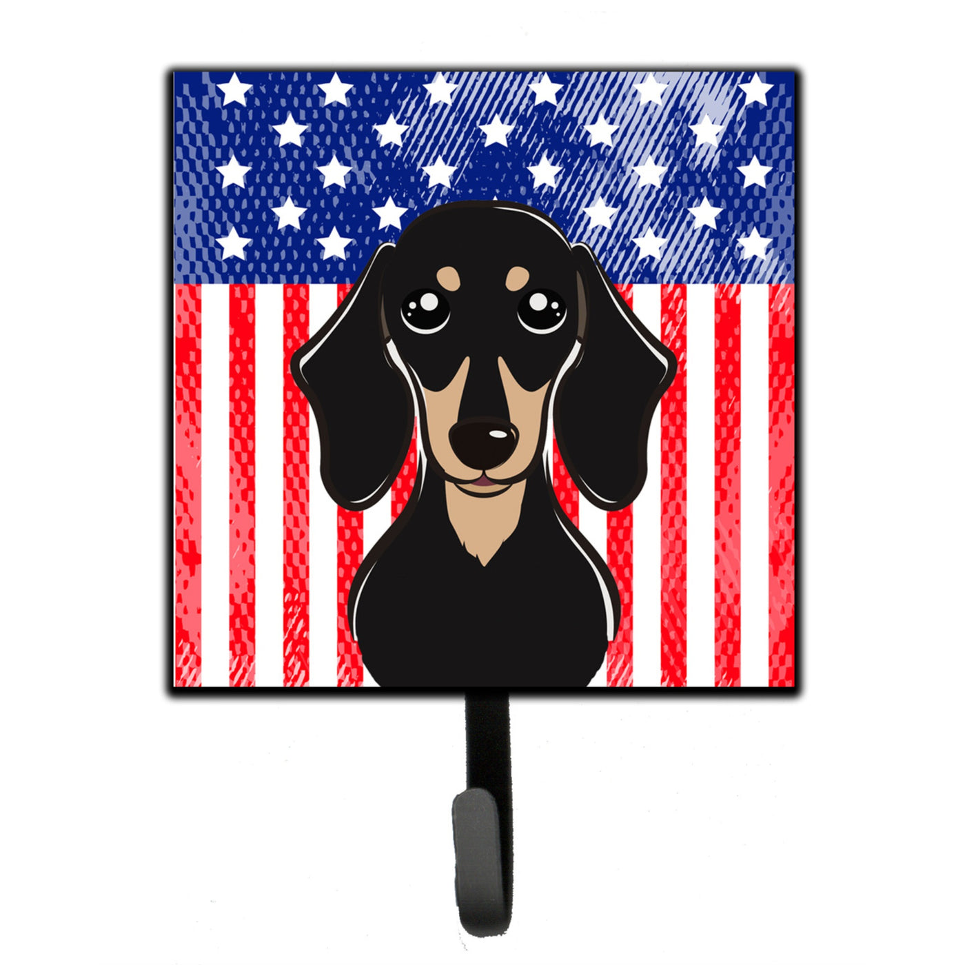 Caroline'S Treasures American Flag And Smooth Black And Tan Dachshund Leash Or Key Holder Hooks, Multicolor