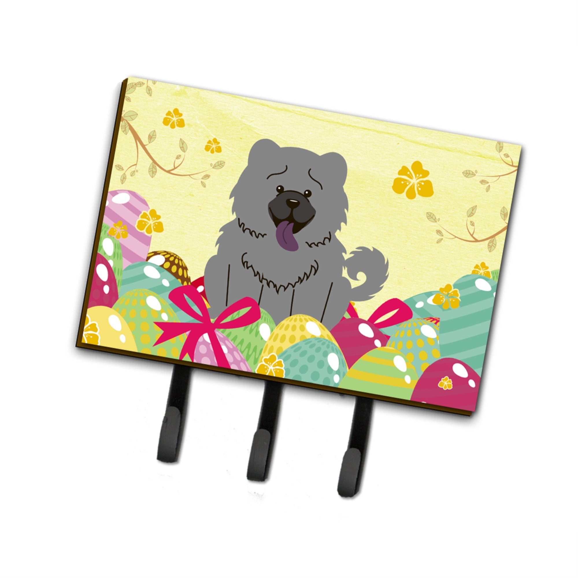 Caroline'S Treasures Easter Eggs Chow Blue Leash Or Key Holder Hooks
