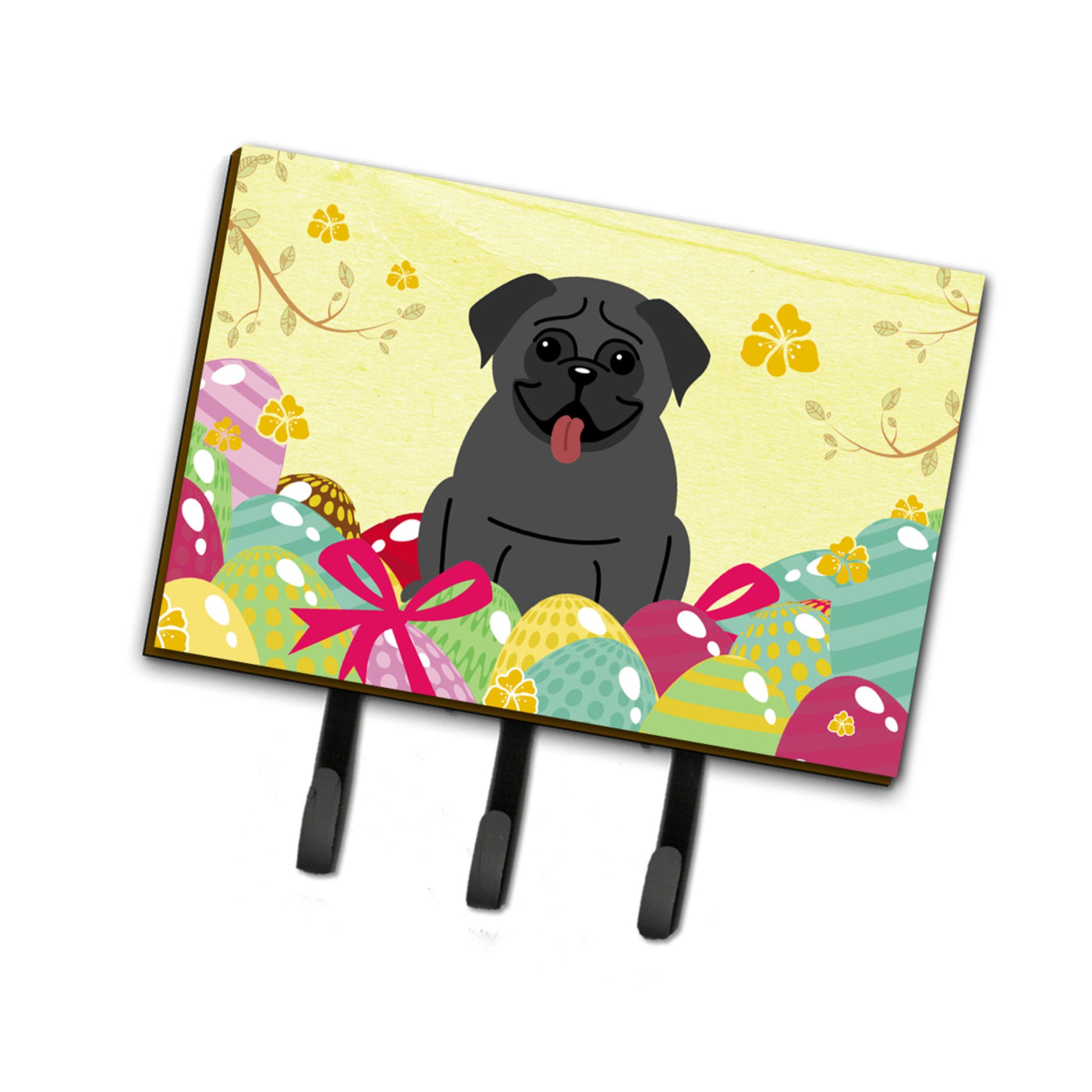 Caroline'S Treasures Easter Eggs Pug Black Leash Or Key Holder Hooks, Multicolor