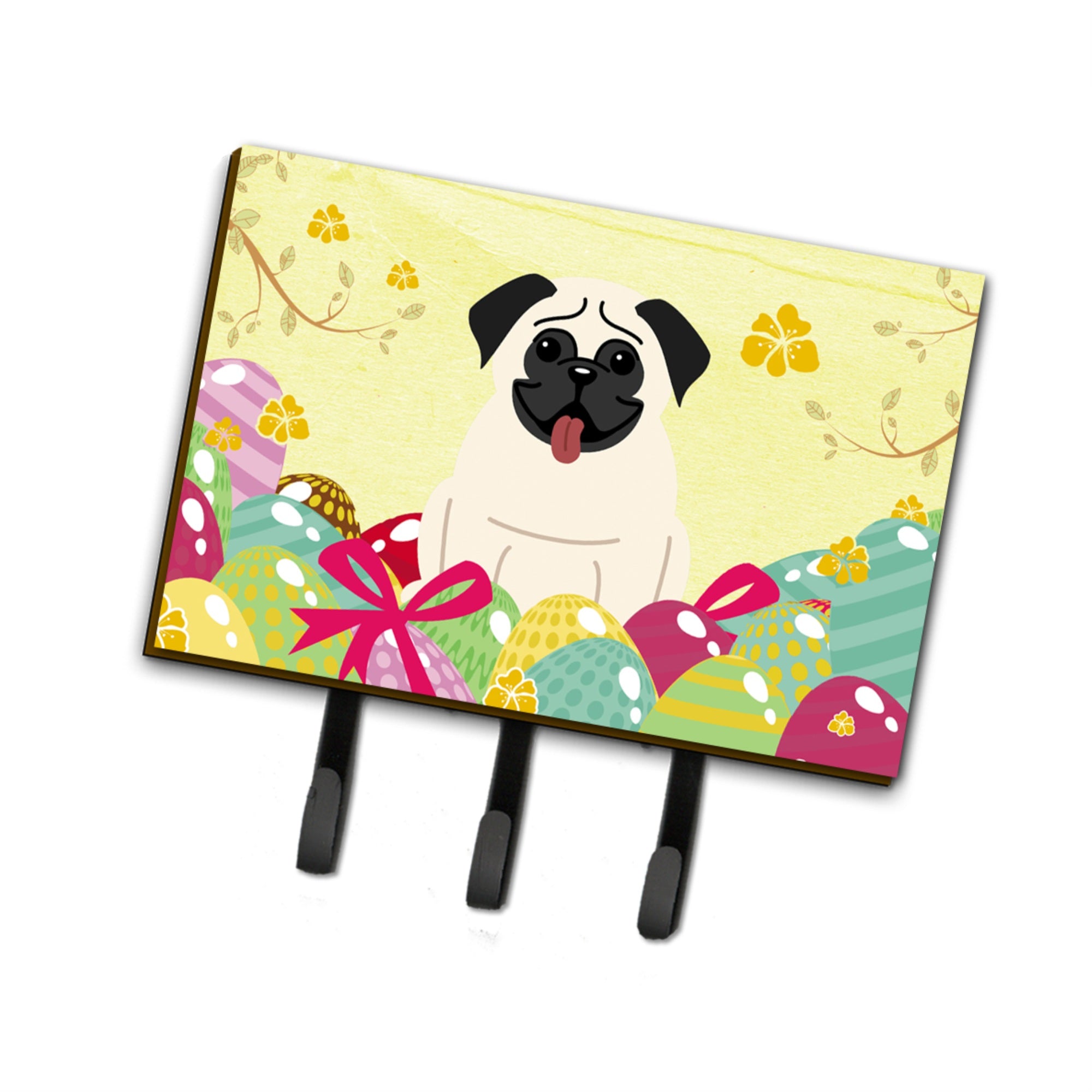 Caroline'S Treasures Easter Eggs Pug Cream Leash Or Key Holder Hooks, Multicolor