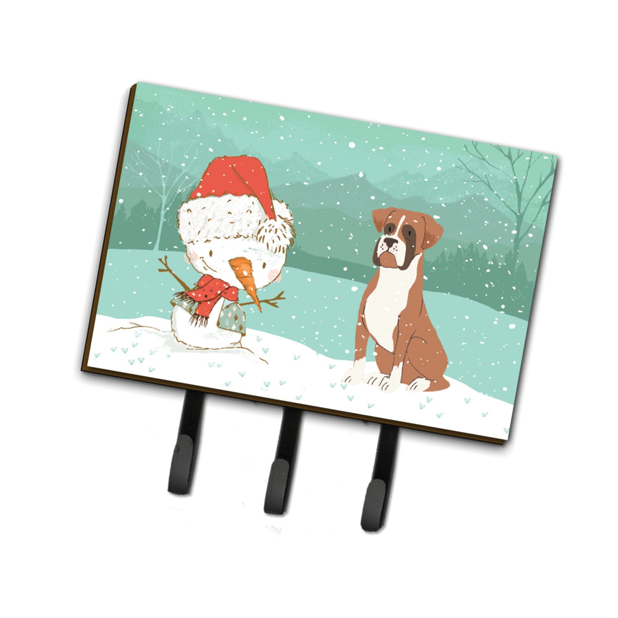 Caroline'S Treasures Fawn Boxer And Snowman Christmas Leash Or Key Holder Hooks, Multicolor