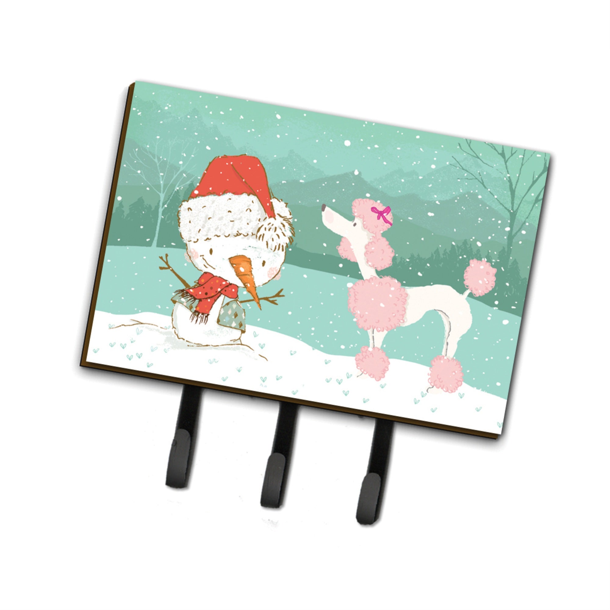 Caroline'S Treasures Pink Poodle Snowman Christmas Leash Or Key Holder Hooks