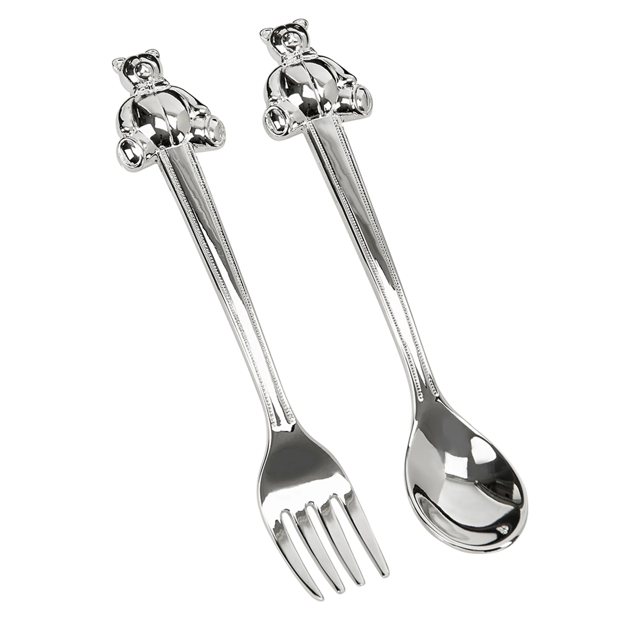 Baby Spoon & Fork With Teddy Handle, Nickle Plated