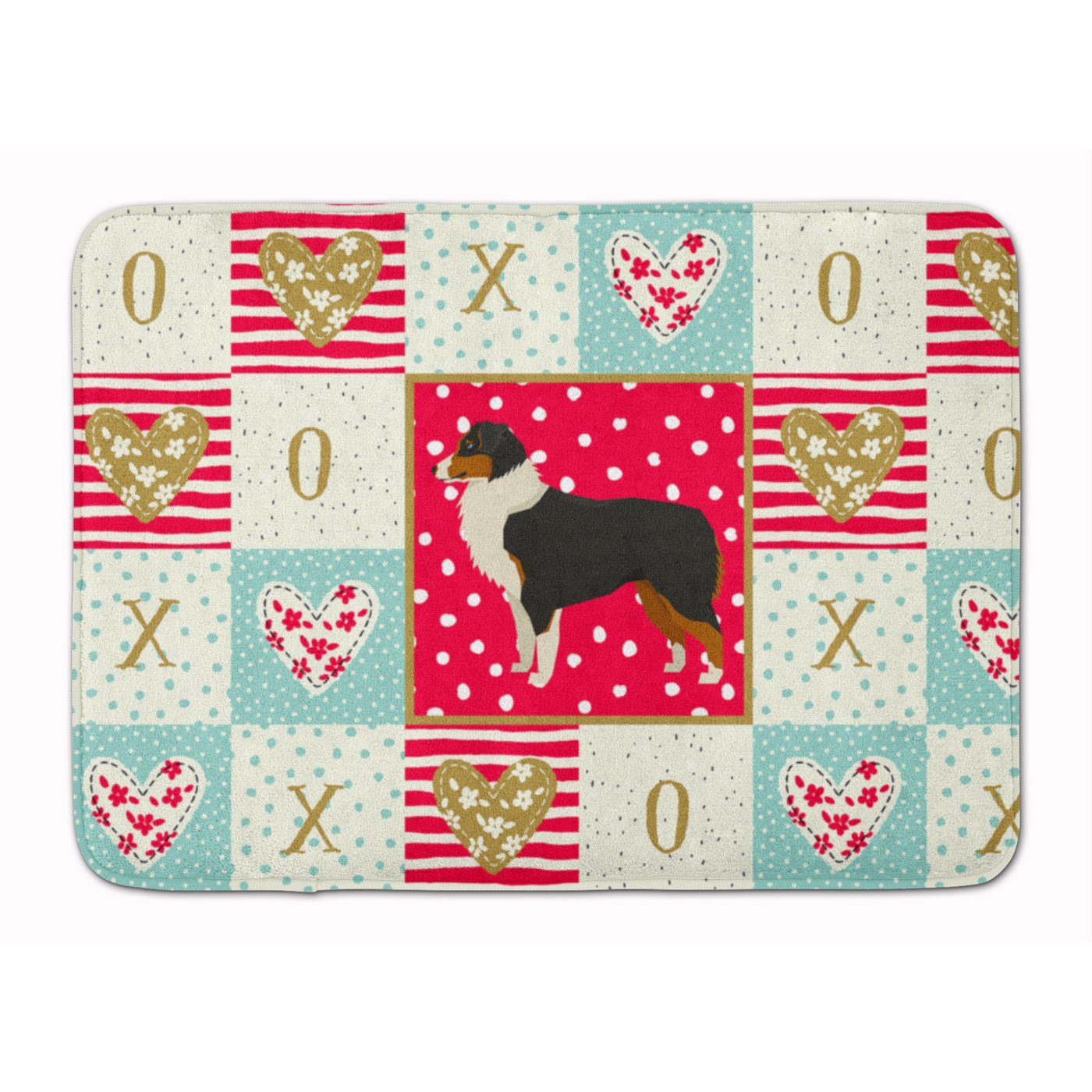 213-194030306550 Australian Shepherd Love Machine Washable Memory Foam Mat By Carolines Treasures, Inc, Made In Usa.Artwork On The Floor Of Your Bathroom. Plush Top And Very Comfortable To The Touch. This Is A Machine Washable Bath Or Kitchen Mat That Is Made With Memory Foam. It Features A Top Surface In Coral Fleece And Is Made Using 100% Microfiber Fabric. The Entire Surface Is Full-Cushion Memory Foam, Ensuring The Ultimate In Comfort. The Underside Of The Mat Features A Non-Skid Sbr Surface For The Best In Safety And Convenience. It Measures 19 Inches By 27 Inches And Is Proudly Printed In The Usa With Artwork From Our Licensed Artists. The Design Is Dyed Into The Fibers Of The Rug For A Long Lasting Image. Wash In Cold Water And Dry In The Dryer On Low Temp. Follow The Care Instructions On The Product Tag.