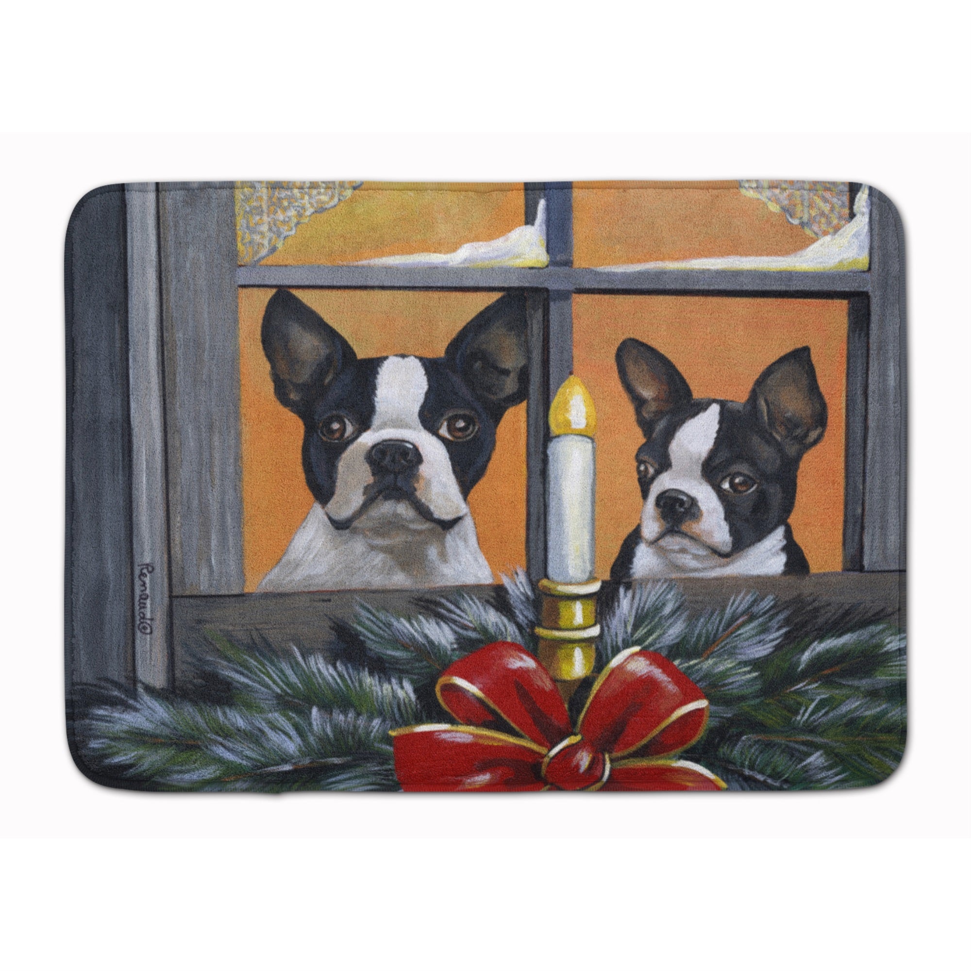 Boston Terrier Looking For Santa Christmas Machine Washable Memory Foam Mat