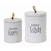 216-746427786034 Canister (Set Of 2) 5.75'H, 7.25'H Stoneware Manufactured By Melrose International. Canister (Set Of 2) 5.75'H, 7.25'H Stoneware