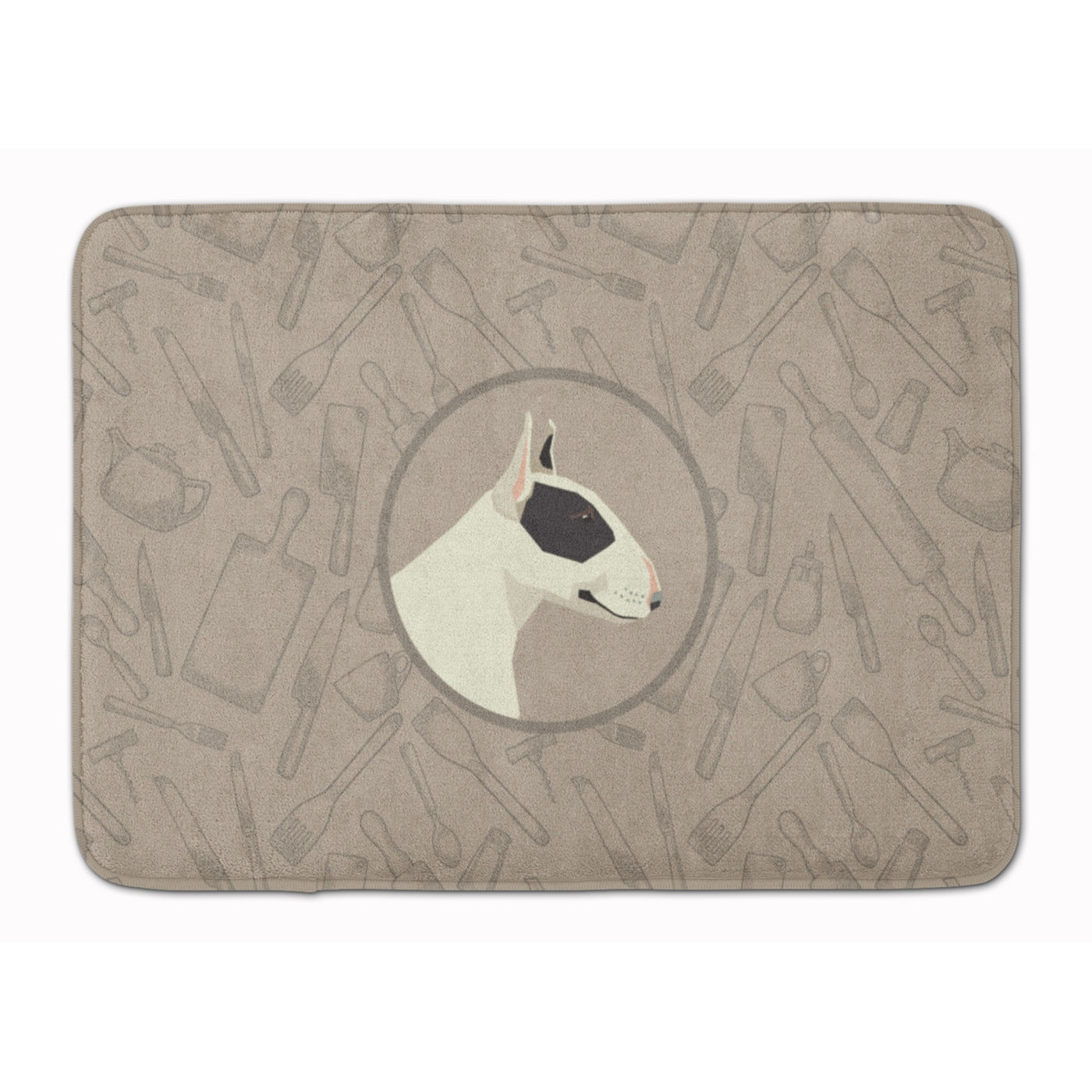 Caroline'S Treasures Black And White Bull Terrier In The Kitchen Machine Washable Memory Foam Mat Doormats