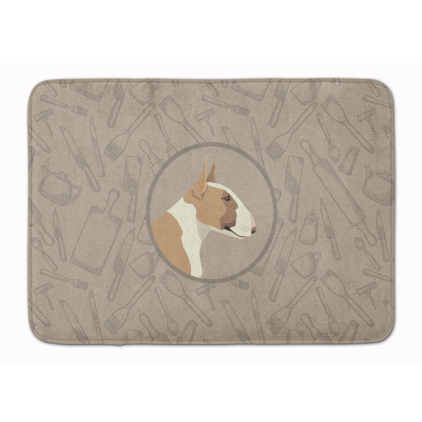 Caroline'S Treasures Fawn And White Bull Terrier In The Kitchen Machine Washable Memory Foam Mat Doormats