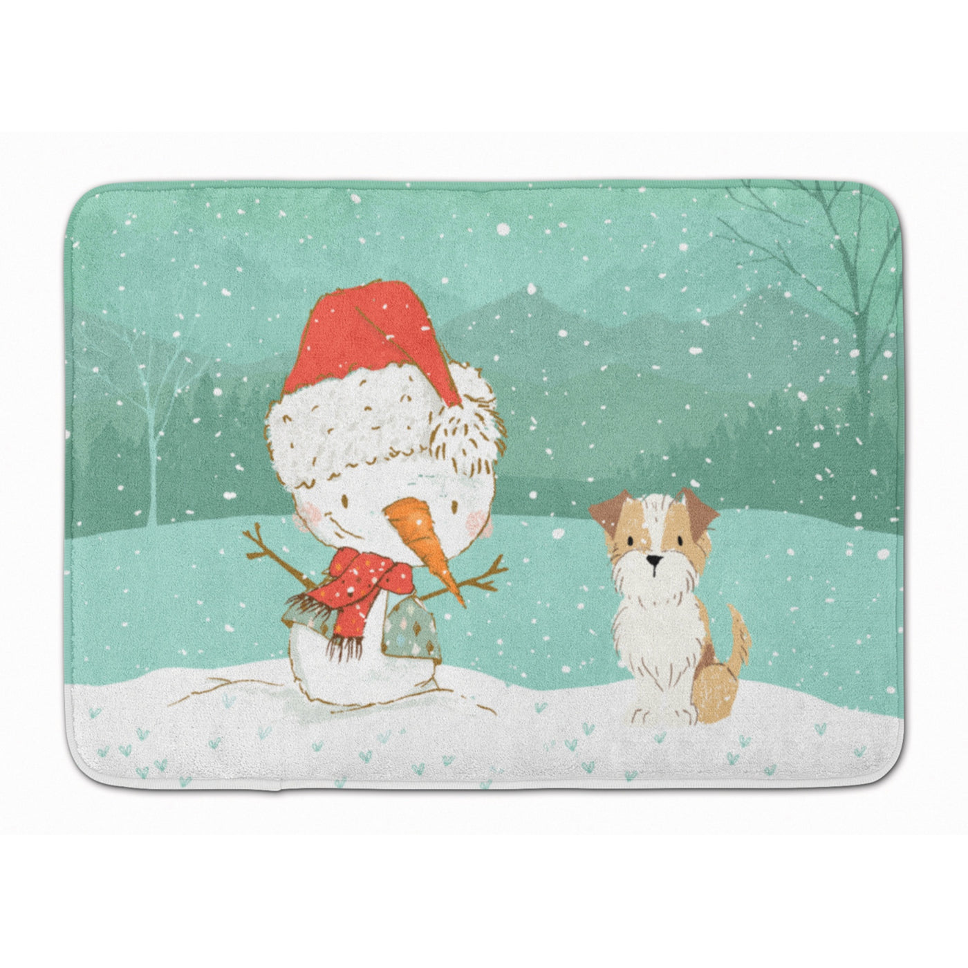 Caroline'S Treasures White Brown Terrier Snowman Christmas Machine Washable Memory Foam Mat