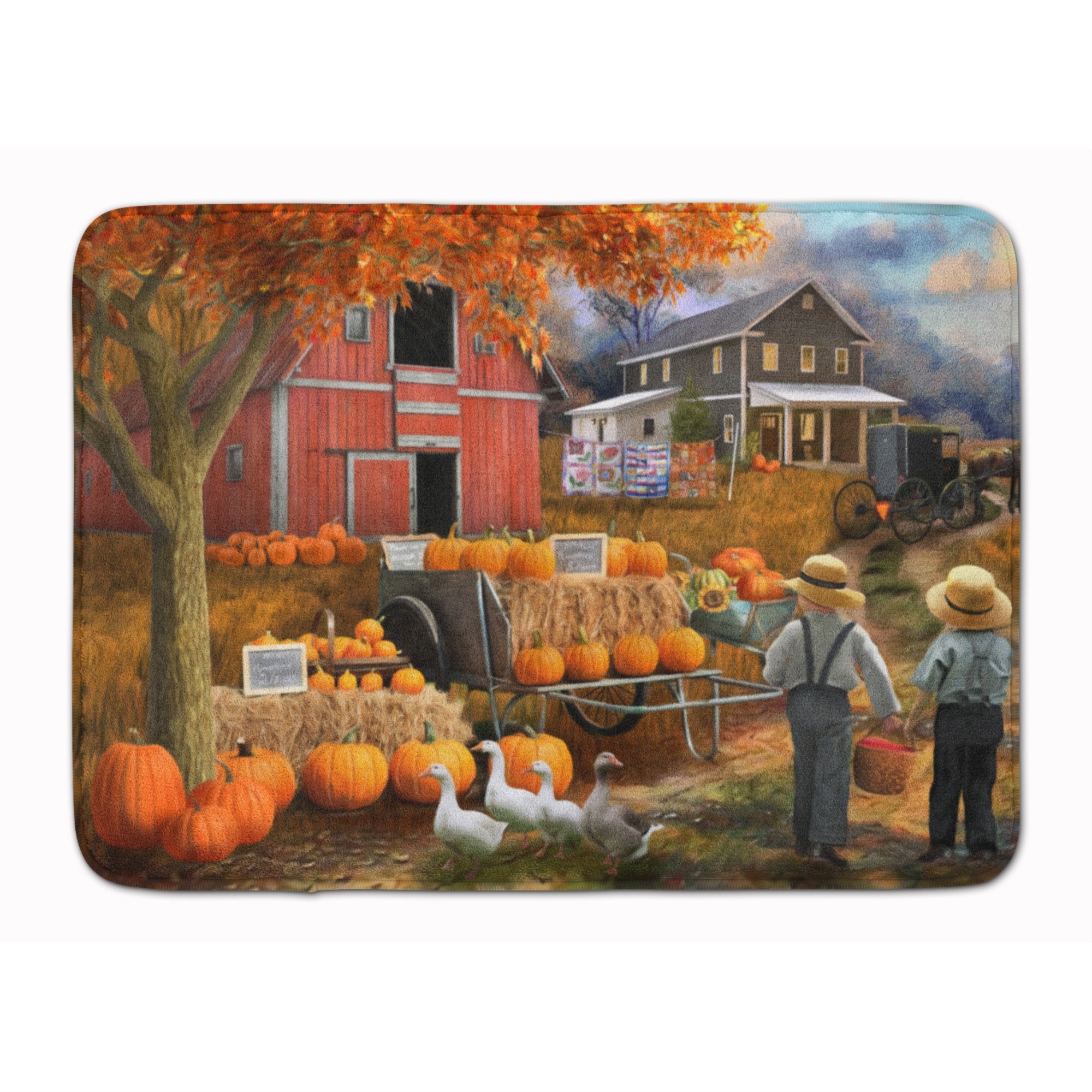 213-194030389768 Fall Amish Pumpkin Stand Machine Washable Memory Foam Mat By Carolines Treasures, Inc, Made In Usa.Artwork On The Floor Of Your Bathroom. Plush Top And Very Comfortable To The Touch. This Is A Machine Washable Bath Or Kitchen Mat That Is Made With Memory Foam. It Features A Top Surface In Coral Fleece And Is Made Using 100% Microfiber Fabric. The Entire Surface Is Full-Cushion Memory Foam, Ensuring The Ultimate In Comfort. The Underside Of The Mat Features A Non-Skid Sbr Surface For The Best In Safety And Convenience. It Measures 19 Inches By 27 Inches And Is Proudly Printed In The Usa With Artwork From Our Licensed Artists. The Design Is Dyed Into The Fibers Of The Rug For A Long Lasting Image. Wash In Cold Water And Dry In The Dryer On Low Temp. Follow The Care Instructions On The Product Tag.