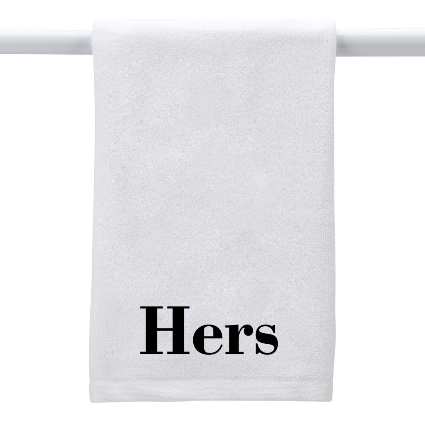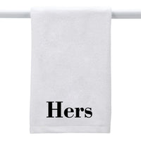 203-47105714852 White Towel Hers (Block), This 16' X 26' White Towel Is 100% Cotton Sheared Terry With A Dobby Border Hem. Manufactured By Creative Gifts Intl, Inc, Made In Usa