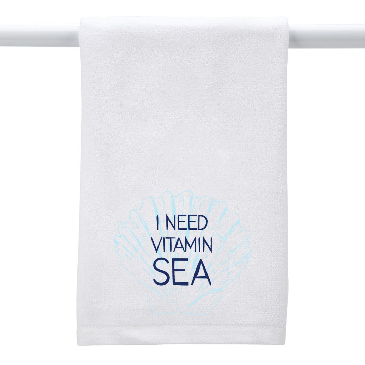 203-47105714784 White Towel I Need Vitamin Sea, This 16 X 26 White Towel Is 100% Cotton Sheared Terry With A Dobby Border Hem. Manufactured By Creative Gifts Intl, Inc, Made In Usa
