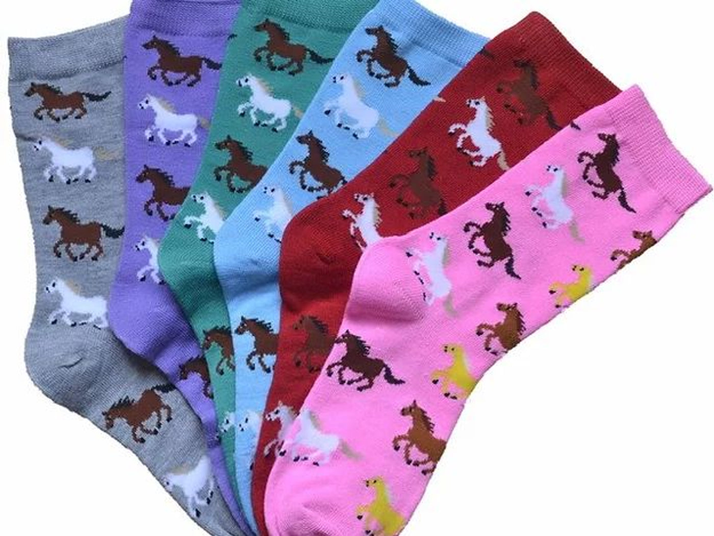 Calling All Pony Lovers! Prance Around In These Colorful, Crew Style Socks One Of Each Color Per 6-Pack. Machine Washable.