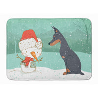 Caroline'S Treasures Doberman And Snowman Christmas Machine Washable Memory Foam Mat, Multicolor