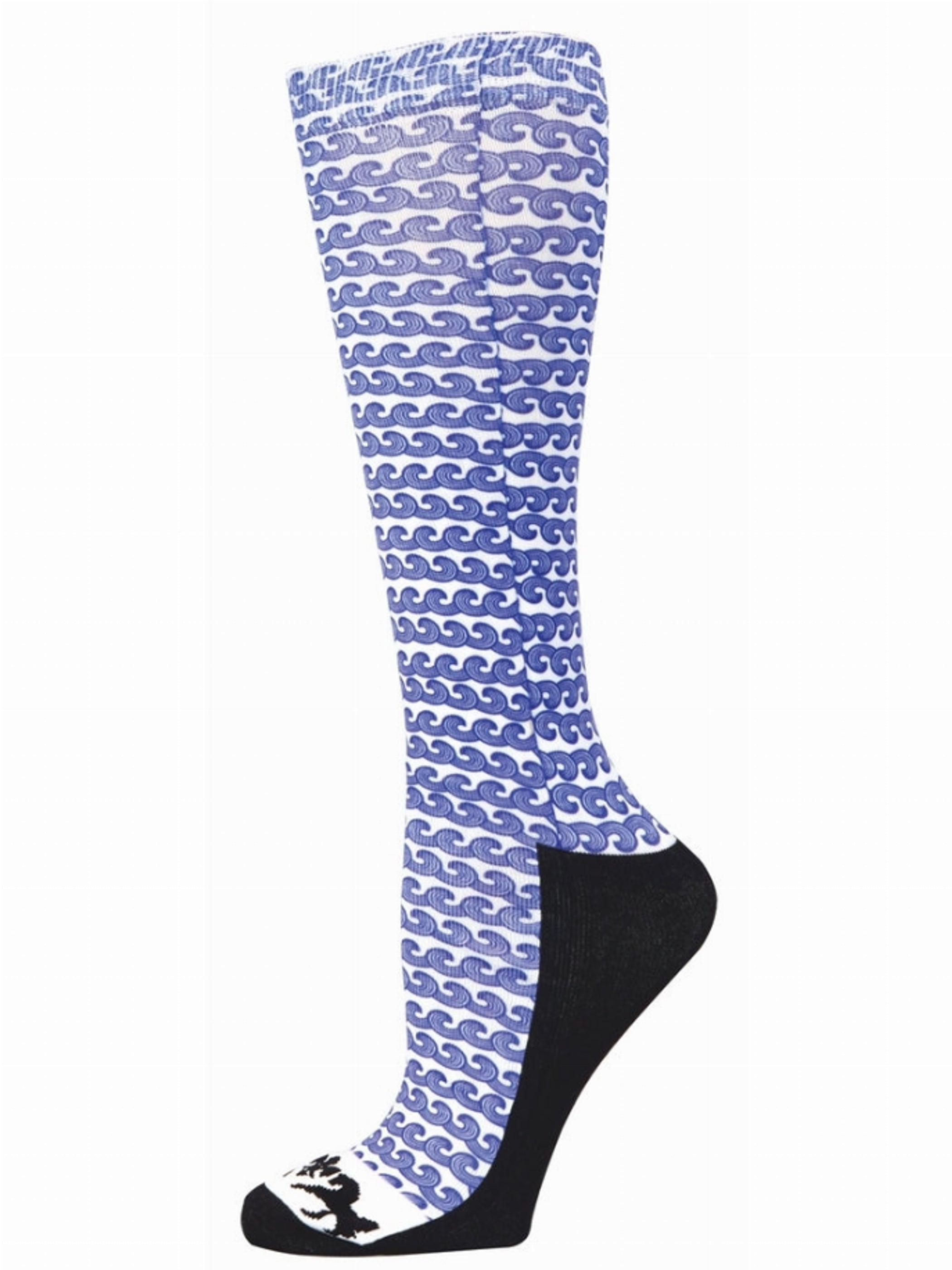 Bring A Beach Inspired Look To The Barn With The Equine Couture Ladies Wave Padded Knee Hi Boot Socks. These Boot Socks Are Super Cozy With A Padded Foot That Provides Cushion And Support. The Fabric Is Also Designed Thin Enough To Be Worn Comfortably Underneath Tall Riding Boots While Being Durable And Stretchy. Riders Can Wear These Boot Socks When Working In The Barn Or In The Saddle.