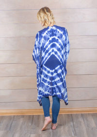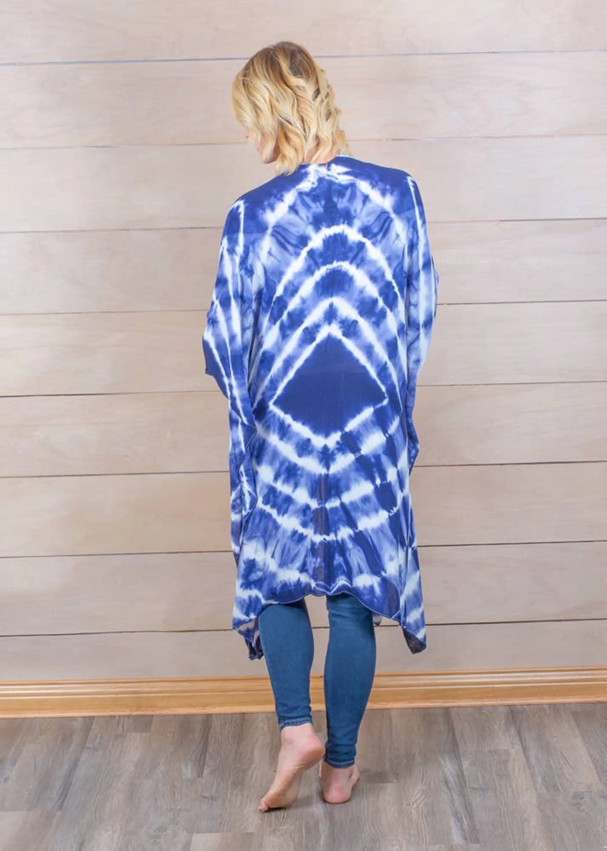 Women'S Flowing Tie-Dyed Blue & White Kimono, One Size By Elanze Designssoft And Flowing, This Tie-Dye Patterned Kimono Makes A Statement Of Comfortable, Casual Fashion.