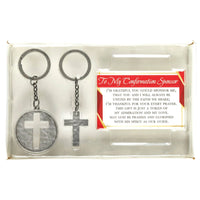 To My Confirmation Sponsor Keychain Set Of 2 Unique Cross Keychain Set Features A Key Ring On Disk With Cutout Cross, Plus The Cross Itself On A Second Key Ring.