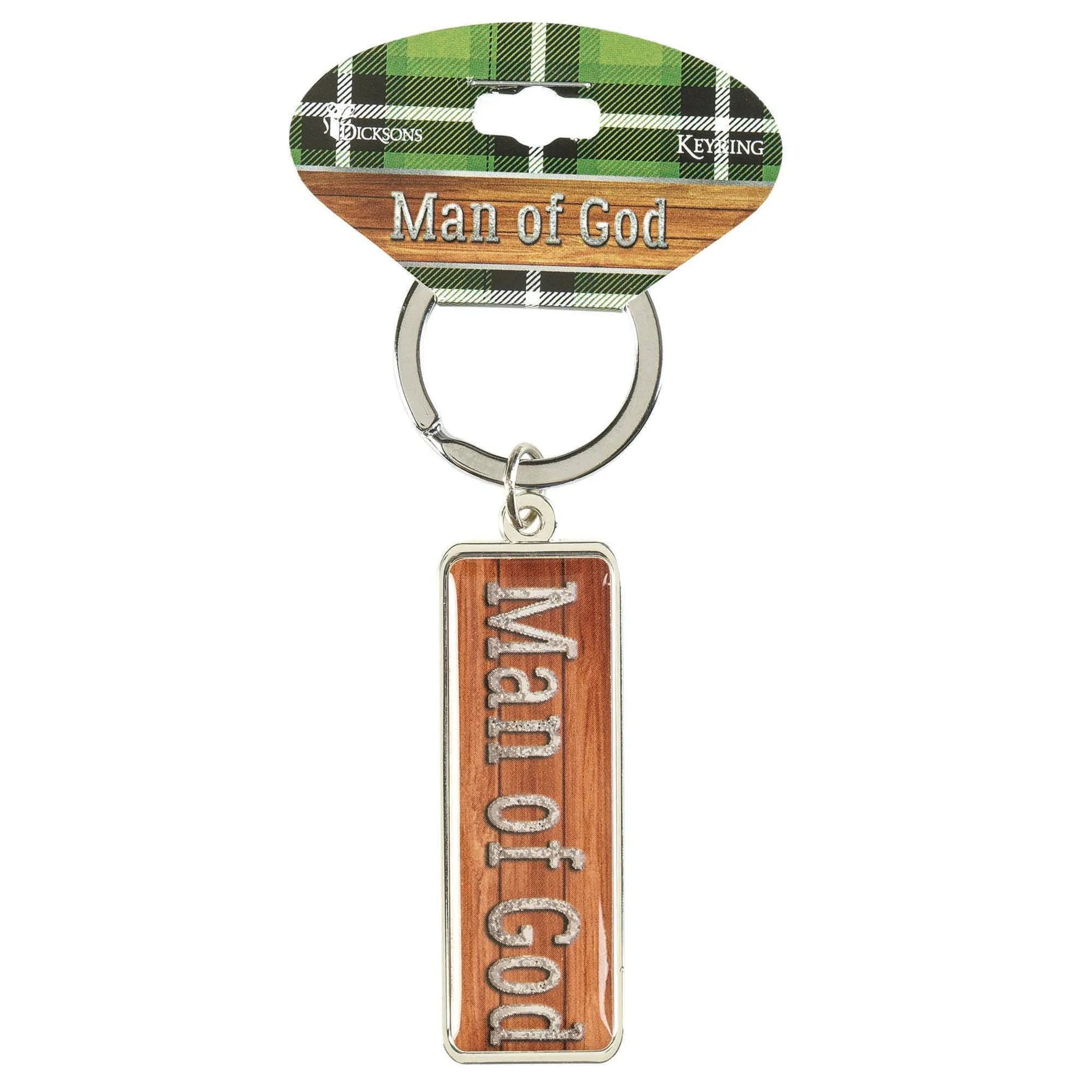 Keyring Has Zinc Alloy Tag With Man Of God On Front; Back Is Engraved With Ephesians 6:10 Bible Verse Reference.