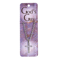 Gods Guy Cutout Box Cross 1-1/8L Stainless Steel 18In Chain. Carded