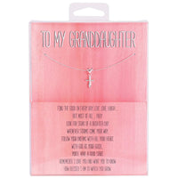 To My Granddaughter Petal Cross Measures 9/16In L X 5/16In W And Hangs From A 16In Chain All In Silver Plate. Comes Packed In A Clear Acrylic Box With Poem Insert That Reads: Find The Good In Every Day, Live, Love, Laugh ... But Most Of All ... Pray. Look For Signs Of A Brighter Day Whenever Storms Come Your Way. Follow Your Dreams With All Your Heart, With God As Your Guide, You Will Have A Good Start. Remember I Love You And Want You To Know How Blessed I Am To Watch You Grow. Alda Maria Copyright Dicksons, Inc.