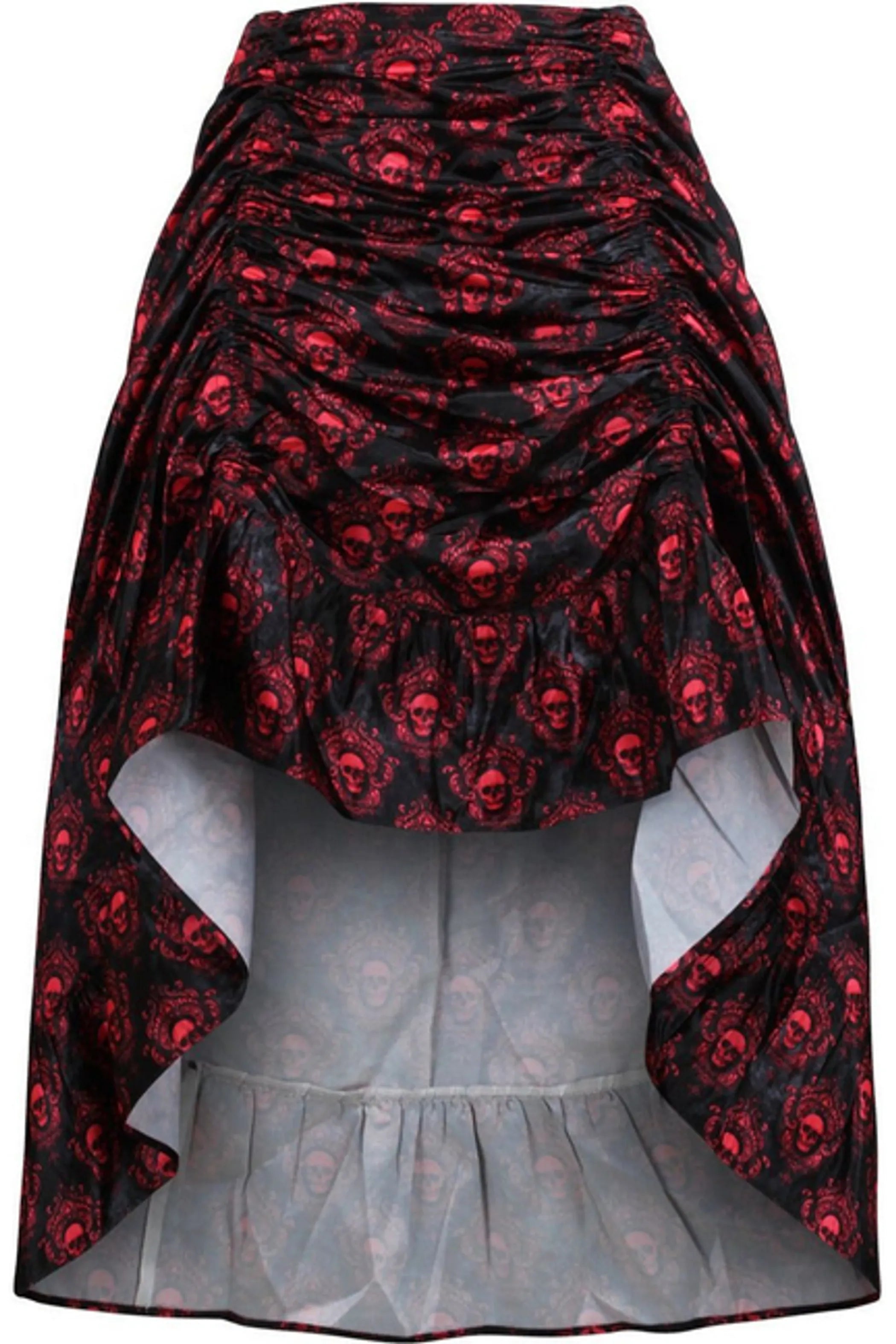 Red & Black Skull Satin Adjustable High Low Skirt