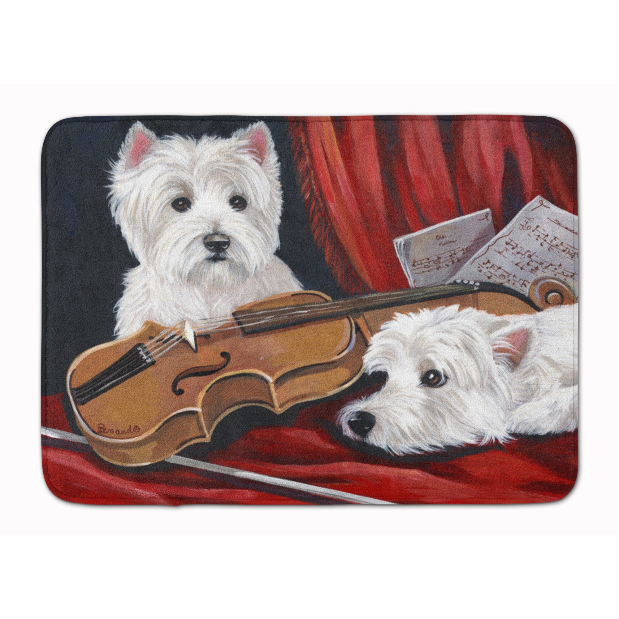 213-194030413548 Westie Fiddlers Machine Washable Memory Foam Mat By Carolines Treasures, Inc, Made In Usa.Artwork On The Floor Of Your Bathroom. Plush Top And Very Comfortable To The Touch. This Is A Machine Washable Bath Or Kitchen Mat That Is Made With Memory Foam. It Features A Top Surface In Coral Fleece And Is Made Using 100% Microfiber Fabric. The Entire Surface Is Full-Cushion Memory Foam, Ensuring The Ultimate In Comfort. The Underside Of The Mat Features A Non-Skid Sbr Surface For The Best In Safety And Convenience. It Measures 19 Inches By 27 Inches And Is Proudly Printed In The Usa With Artwork From Our Licensed Artists. The Design Is Dyed Into The Fibers Of The Rug For A Long Lasting Image. Wash In Cold Water And Dry In The Dryer On Low Temp. Follow The Care Instructions On The Product Tag.