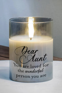 Flameless Pearlized Grey Led Glass Candle That Says: Dear Aunt/You Are Loved For The Wonderful Person You Are.