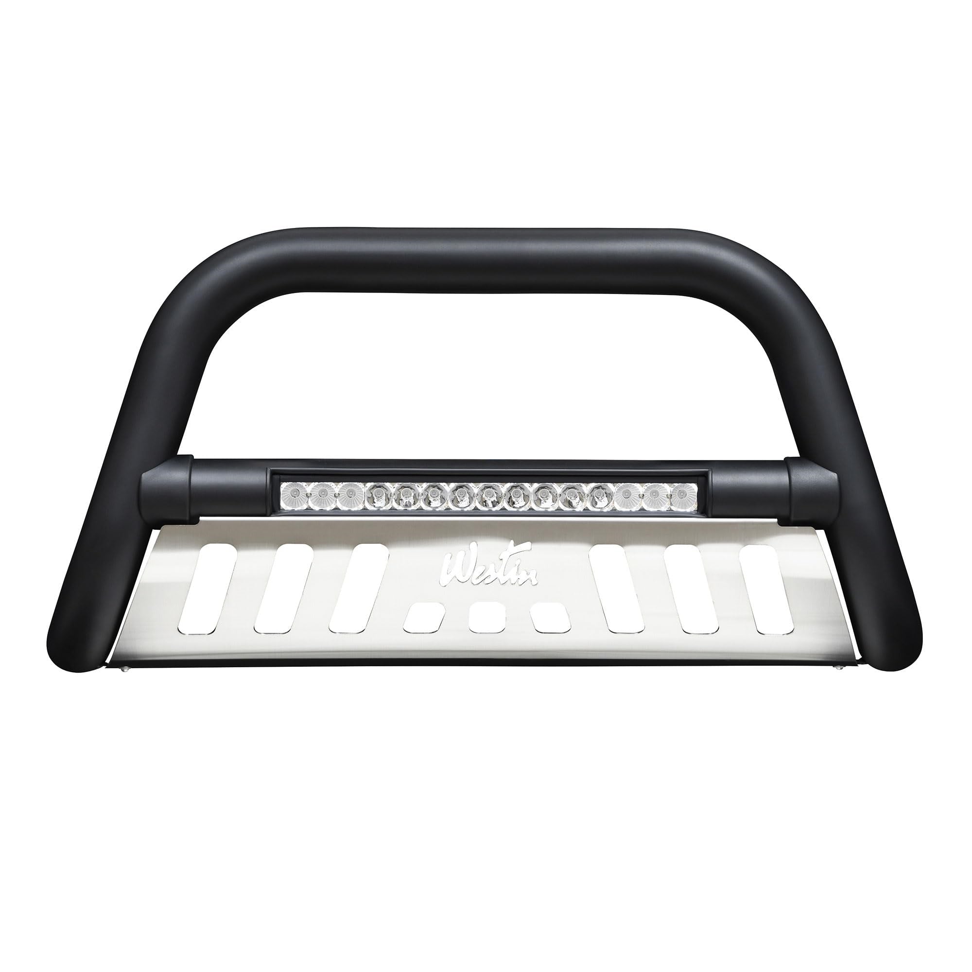 Westins Ultimate Led Bull Bar Will Take Your Truck To The Next Level With This Cool New Look! The Integrated Light Bar Is A 20 Single Row With 15 X 3 Watt Leds. The Led Light Bar Is Flush Mounted In The Center Cross Tube And Weather Sealed For Moisture Resistance. Built With 3 Steel Tubes, Our Ultimate Led Bull Bar Features Molded Transition Bushings And A Brushed Stainless Steel Skid Plate For A Perfect Look. The Product Is Available In Chrome Plated Stainless Steel Backed By A Lifetime Warranty, And In Textured Black Powder Coat Backed By A 3-Year Warranty. Make A Bold Statement With Westins New Ultimate Led Bull Bar And Give Your Truck The Durability, Look And Style It Deserves.