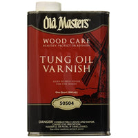 1791987 Tung Oil Varnish 1 Qt Old Masters Wood Care Clear Tung Oil Varnish 1 Qt Base Type: ,Product Type: Tung Oil Varnish ,Sealer: Yes ,Sub Brand: Wood Care ,Time Before Recoating: ,Tintable: No ,Transparency: ,Uv Resistant: No ,Voc Level: 450 ,Brand Name: Old Masters ,Coating Material: ,Color: Clear ,Container Size: 1 ,Coverage Area: 169.5 ,Application Method: Brush Or Rag ,Color Family: Clear ,Indoor Or Outdoor: Indoor ,Sheen: ,Contents Before Colorant: