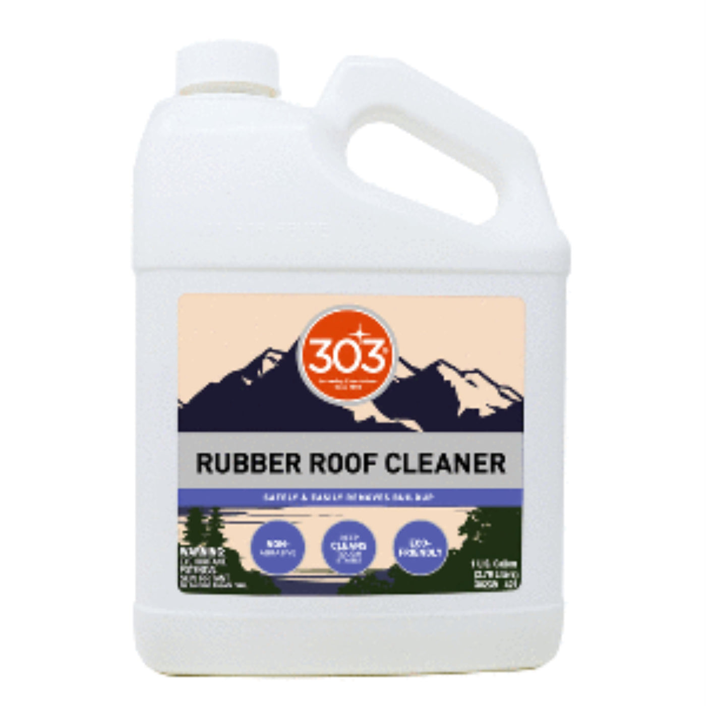 Strongrubber Roof Cleaner - 128Oz/Strongkeep Your Rv&Rsquos Rubber Roof Lasting Longer Using 303&Reg Rubber Roof Cleaner. With Frequent And Proper Cleaning Of Your Rv&Rsquos Rubber Roof, You Can Prevent Contaminants From Becoming Embedded In The Surface Which Causes It To Degrade Over Time. 303&Reg Rubber Roof Cleaner Is Biodegradable, So It&Rsquos Perfectly Safe To Rinse It Off The Roof And Siding Of An Rv. You Also Do Not Need To Worry About Harming The Solar Panels On The Top Of Your Rv Either. Simply Clean Any Residue That Might Get On The Panels With Water. For The Ultimate Longevity Of Your Rubber Roof, Use A Coat Of 303&Reg Aerospace Protectant After Treating With 303&Reg Rubber Roof Cleaner.Strongfeaturesstrongullicleans And Dissolves Dirt On Rubber Roofs On Rvs, Campers, Pop-Ups, And Motorhomes/Lilibiodegradable And Non-Abrasive/Liliwill Not Harm Solar Panels/Liliwon&Rsquot Damage Or Dry Out Siding Or Rubber Seals/Liligreat For Use Prior To 303&Reg Aerospace Protectant/Li/Ulstrongdirectionsstrongclean And Remove Any Loose Dirt And Debris On The Roof. Add 5 Oz. Of 303&Reg Rubber Roof Cleaner To A 5-Gallon Bucket And Fill It With Clean Water. Clean The Roof Using A Scrubbing Tool Like A Brush Or Mop, Cleaning One 3-4 Sq. Ft. Section At A Time. Repeat On All Sections Of The Roof, Rinsing Tools As Necessary. After All, Sections Have Been Cleaned, Rinse The Entire Roof With A Hose And Let Dry. Never Walk On A Wet Roof. You May Also Add To An Empty Spray Bottle And Spray On The Roof Instead Of Mixing It With Water In A Bucket.Rinse Any Residual Runoff Immediately To Prevent Streaking/Water Marks From Occurring Over The Sides. 303&Reg Rubber Roof Cleaner Will Not Harm Solar Panels, However, We Do Not Recommend Cleaning Solar Panels With This Product. !