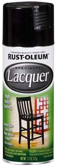 Product Descriptionrust-Oleum Specialty Lacquer Spray Adds An Ultra-Hard, Factory-Like Finish To Furniture And Accessories Like Chairs, Planters, Picture Frames, Lamps And Much More Apply To Almost Any Interiorexterior Surface Including Wood, Metal, Plaster, Masonry Or Unglazed Ceramic To Create An Elegant Design And Finish Lacquer Produces A Durable, High Luster Coating With Fast Cure And Hardening Time Than Regular Paintfrom The Manufacturerrust-Oleum 1905830 Lacquer 11-Ounce Gloss Spray Paint, Black Rust-Oleum Specialty Lacquer Spray Adds An Ultra-Hard, Factory-Like Finish To Furniture And Accessories Apply To Wood, Metal, Plaster, Masonry Or Unglazed Ceramic Hardens To High Luster Rust-Oleum 1905830 Lacquer 11-Ounce Gloss Spray Paint, Black Features: Professional High Luster Look Popular On Furniture And Accessories Fast-Curing Formula Hardens Faster Than Regular Paints Provides An Ultra-Rich, Ultra-Hard, Factory-Like Finish On Wood, Metal, And More Smooth, Fast-Dry Formula Can Be Polished To An Even Higher Level Of Gloss Rosol Spray Lacquer Gloss Black 11-Ounce