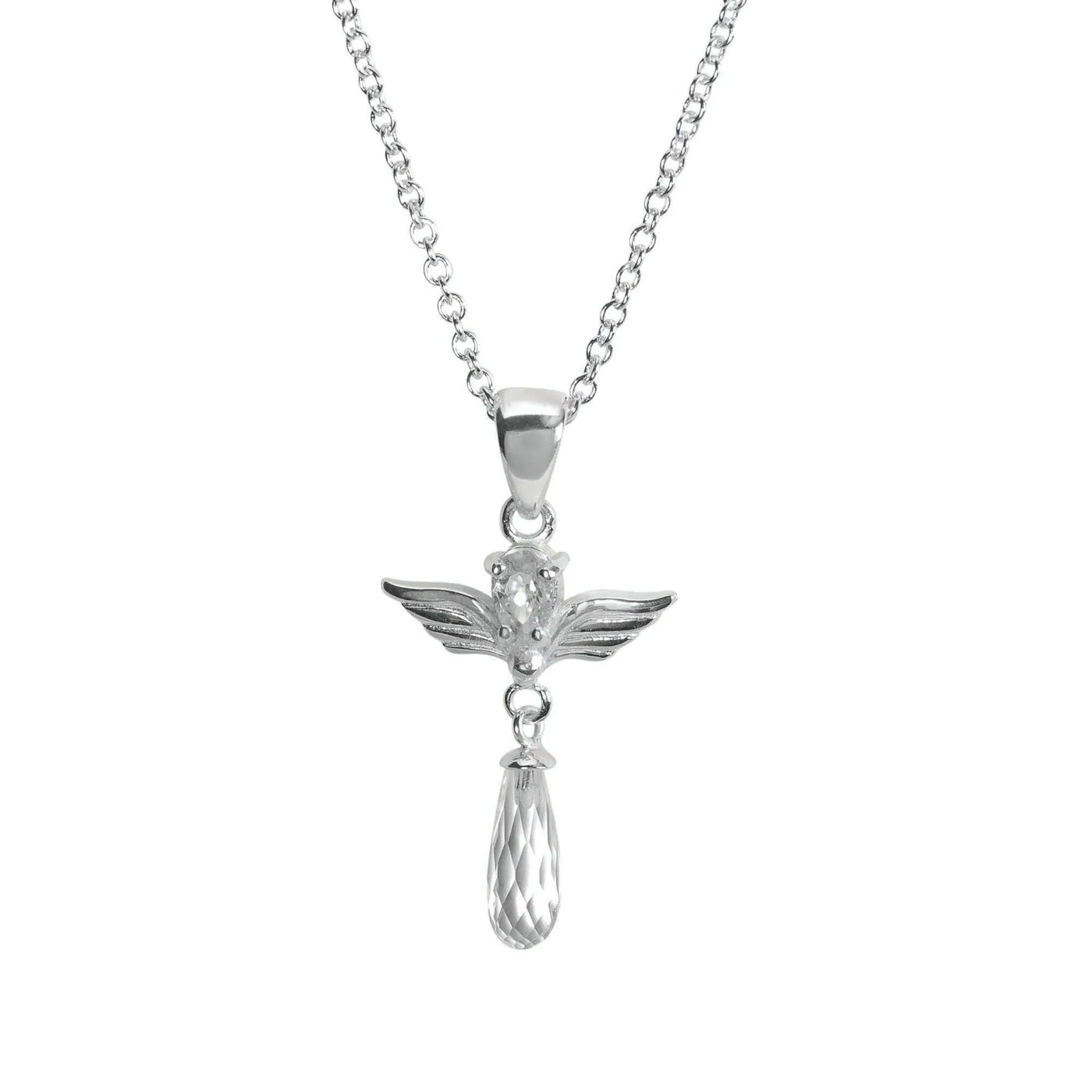 Silver Plated Angel With Cz Head And Crystal Teardrop On 18' Silver Plated Chain