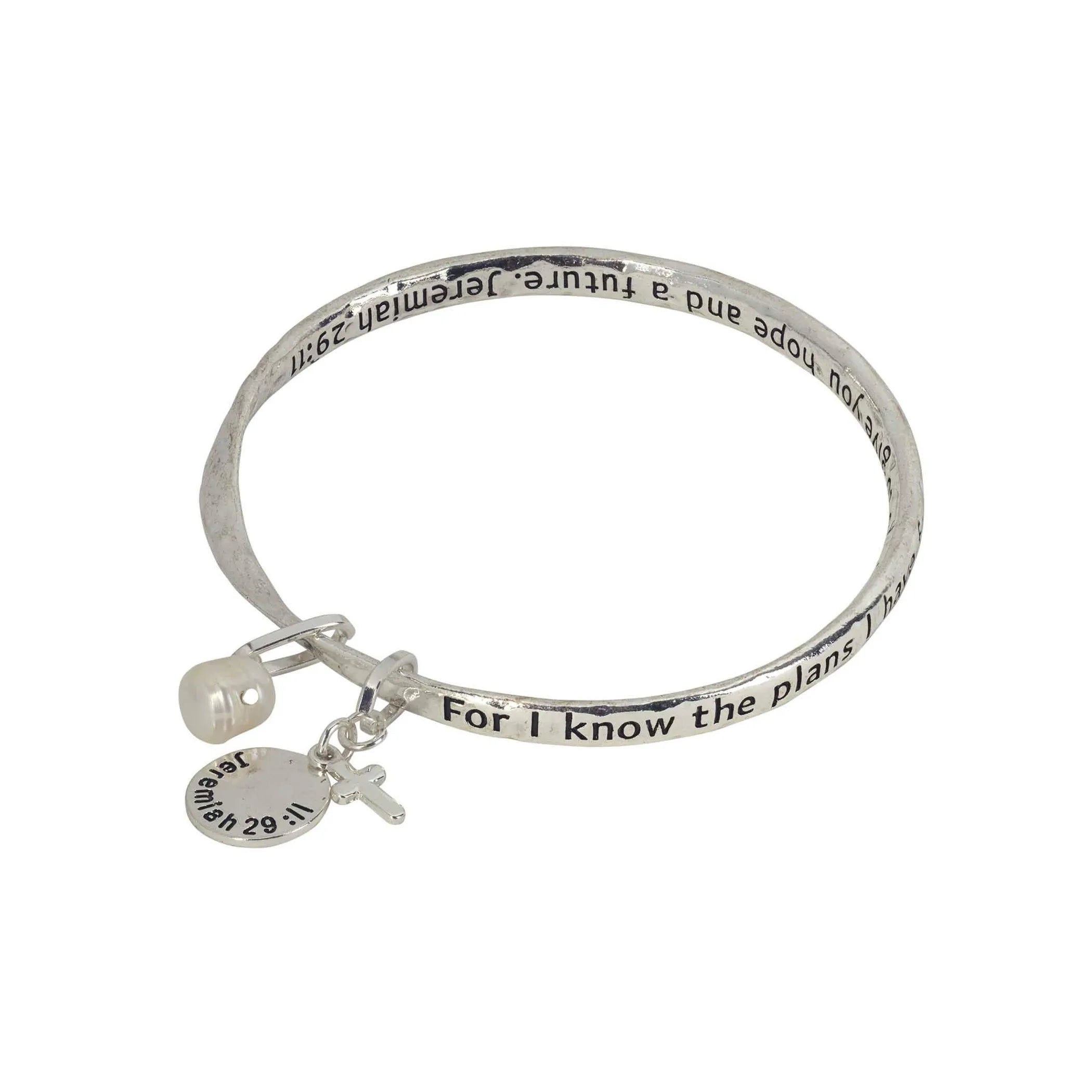 Jeremiah 29:11 Hammered Twist Bangle With Dangle Accents.
