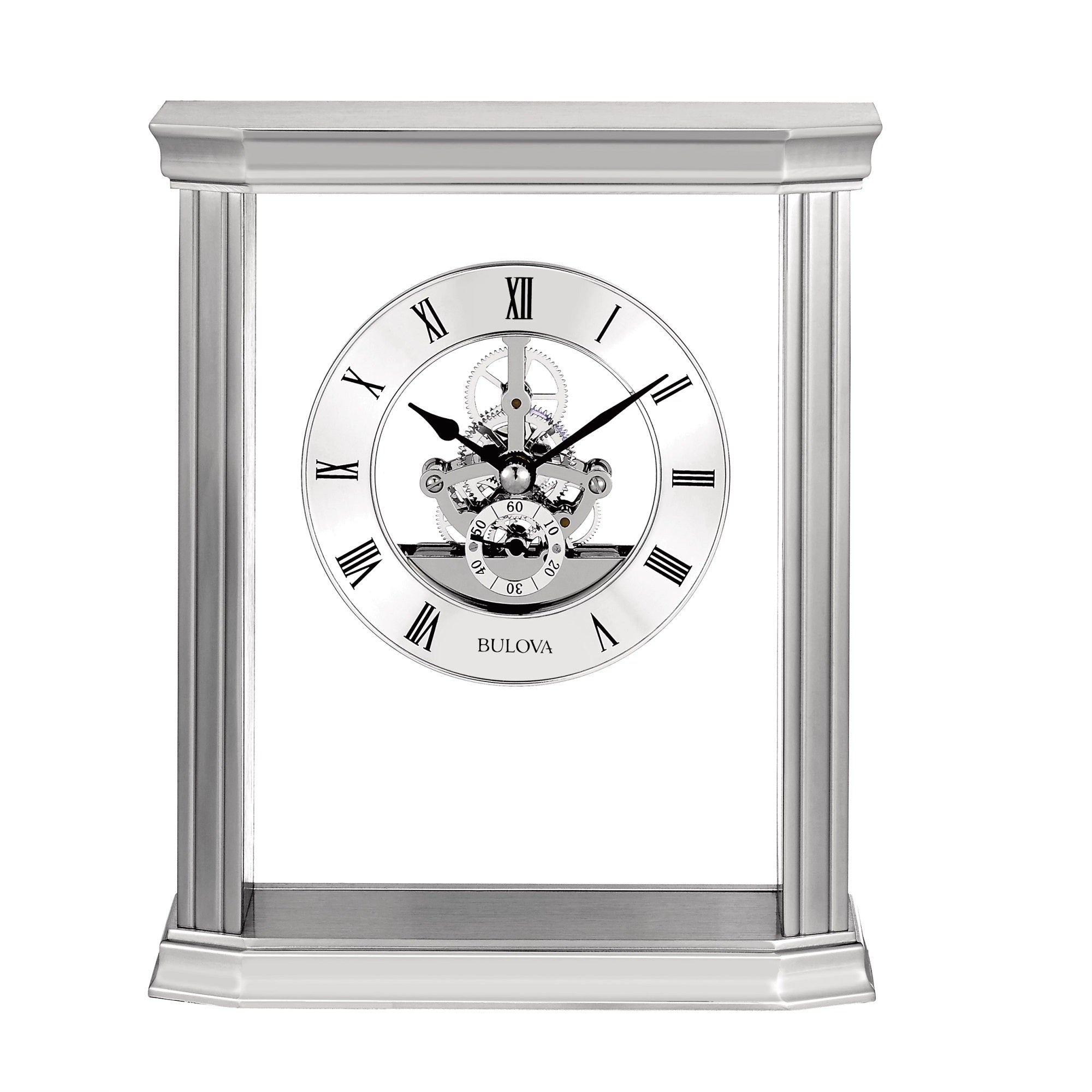 Solid Cast Metal Case Has A Polished Silver Finish With Angled Roman Accent Columns That Frame The Finely Cut Gears Of The Skeleton Movement Which Seems To Fl Oat In The Case Center. A Remote Sub Dial Counts The Passing Seconds. Protective Glass Crystal, Brushed Silver Engraving Plate Included For Personalization Accurate Quartz Movement Uses (1) Aa Battery, Not Included.