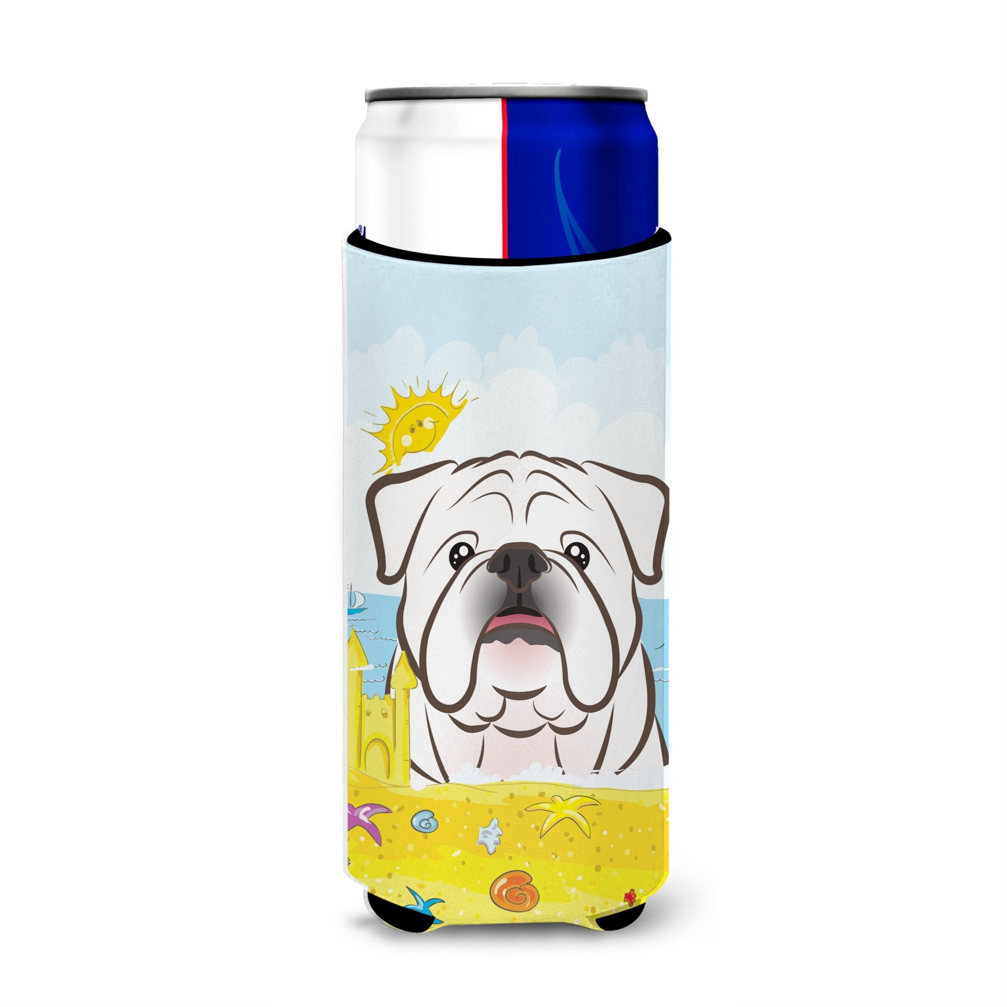 Caroline'S Treasures Bb2088Muk White English Bulldog Summer Beach Michelob Ultra Koozies For Slim Cans, Multicolor