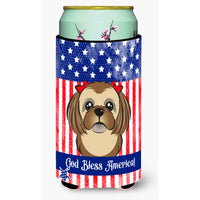 Caroline'S Treasures Bb2179Tbc God Bless American Flag With Chocolate Brown Shih Tzu Tall Boy Hugger Koozie, Multicolo