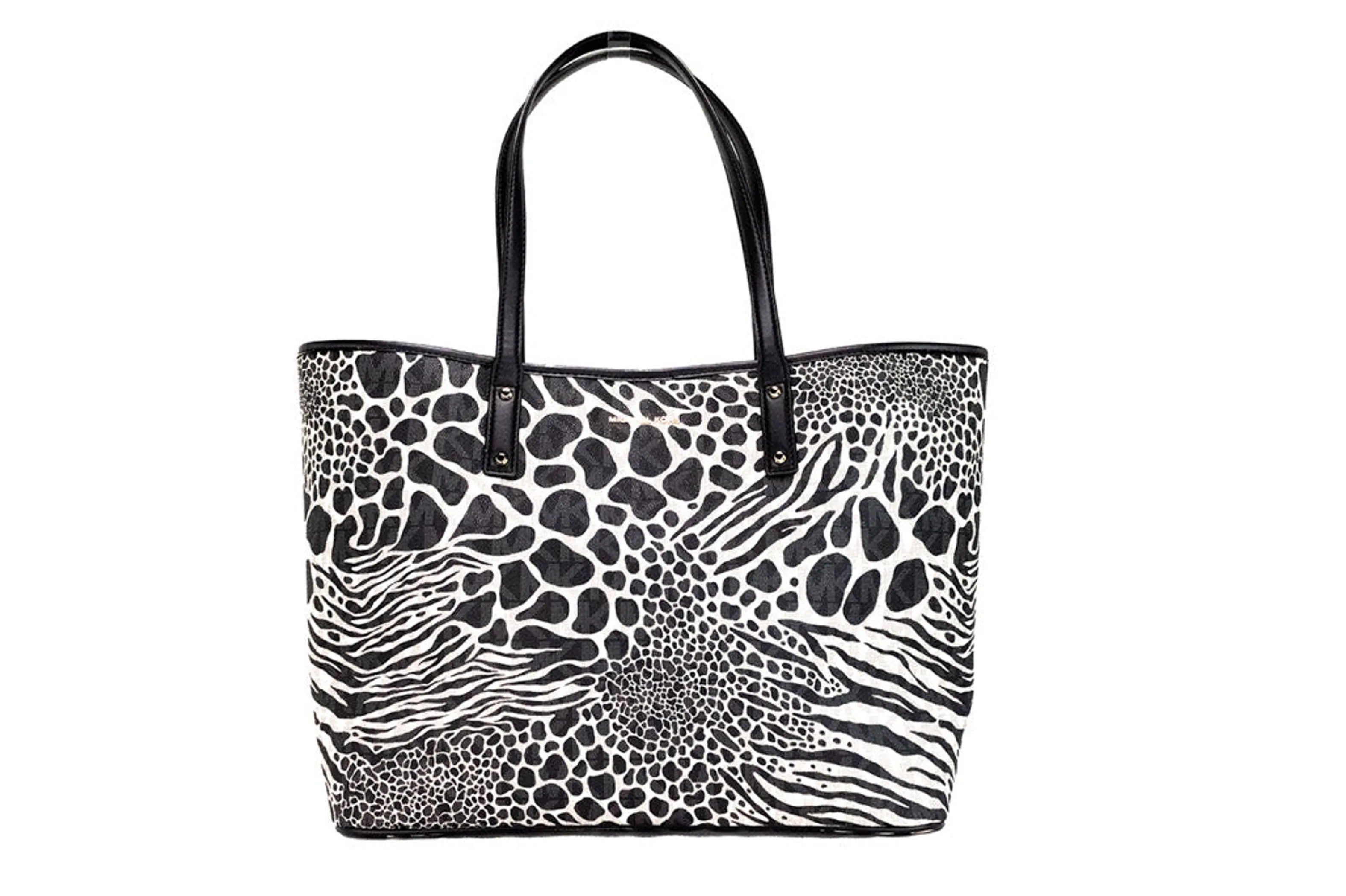 Style: Michael Kors Carter Large Black Animal Print Pvc Open Tote Shoulder Handbag