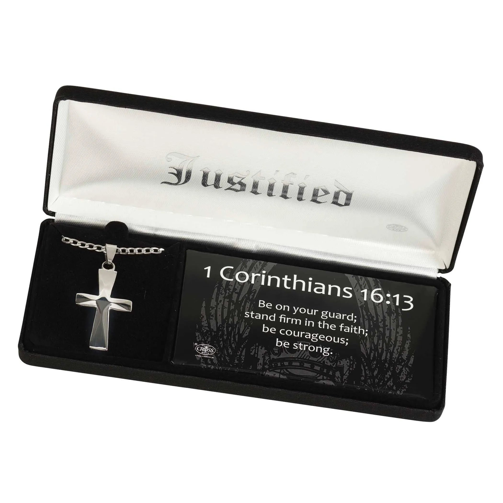 Stainless Steel Diamond Beveled Flare Cross Necklace Measures 1 1/2In On 24In Chain.