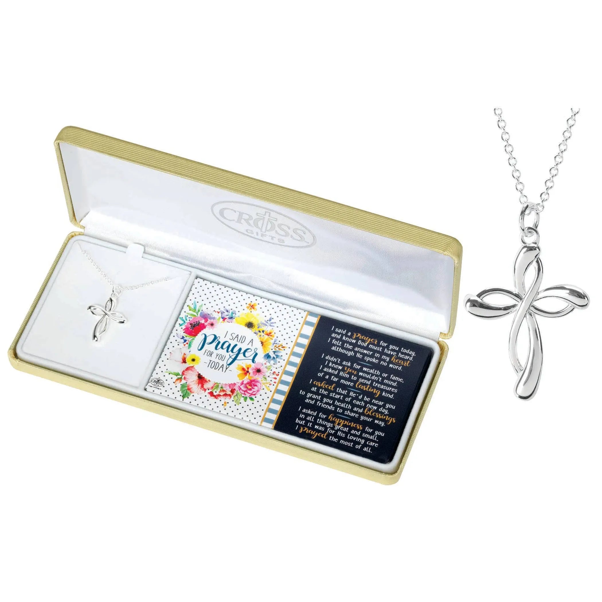Necklace I Said A Prayer Ribbon Cross Silver Plate