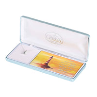 John 12:46 Lighthouse Pendant With 3Cz Stones Is Silver Plated On An 18 Inch Chain; Packed In An Aqua Hinged Gift Box With An Insert That Reads: I Have Come Into The World As A Light, So That No One Who Believes In Me Should Stay In Darkness. John 12:46