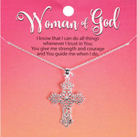 Large Open Bud Cross 1-1/8Lx7/8W Silver Plate 18In Chain Carded With Short Poem That Reads: I Know That I Can Do All Things Whenever I Trust In You; You Give Me Strength And Courage And You Guide Me When I Do. Alda Maria Copyright Dicksons, Inc
