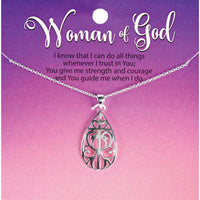 Open Teardrop With Cross 1Lx9/16W Silver Plate 18In Chain Carded With Short Poem That Reads: I Know That I Can Do All Things Whenever I Trust In You; You Give Me Strength And Courage And You Guide Me When I Do. Alda Maria Copyright Dicksons, Inc.