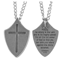 1 1/4 Inches Shield Cross Necklace On 24 Inch Stainless Steel Curb Chain