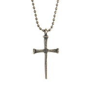 Pewter Brass Ox Plate Long Nail Cross Necklace On 24 Inch Brass Ox Bead Chain
