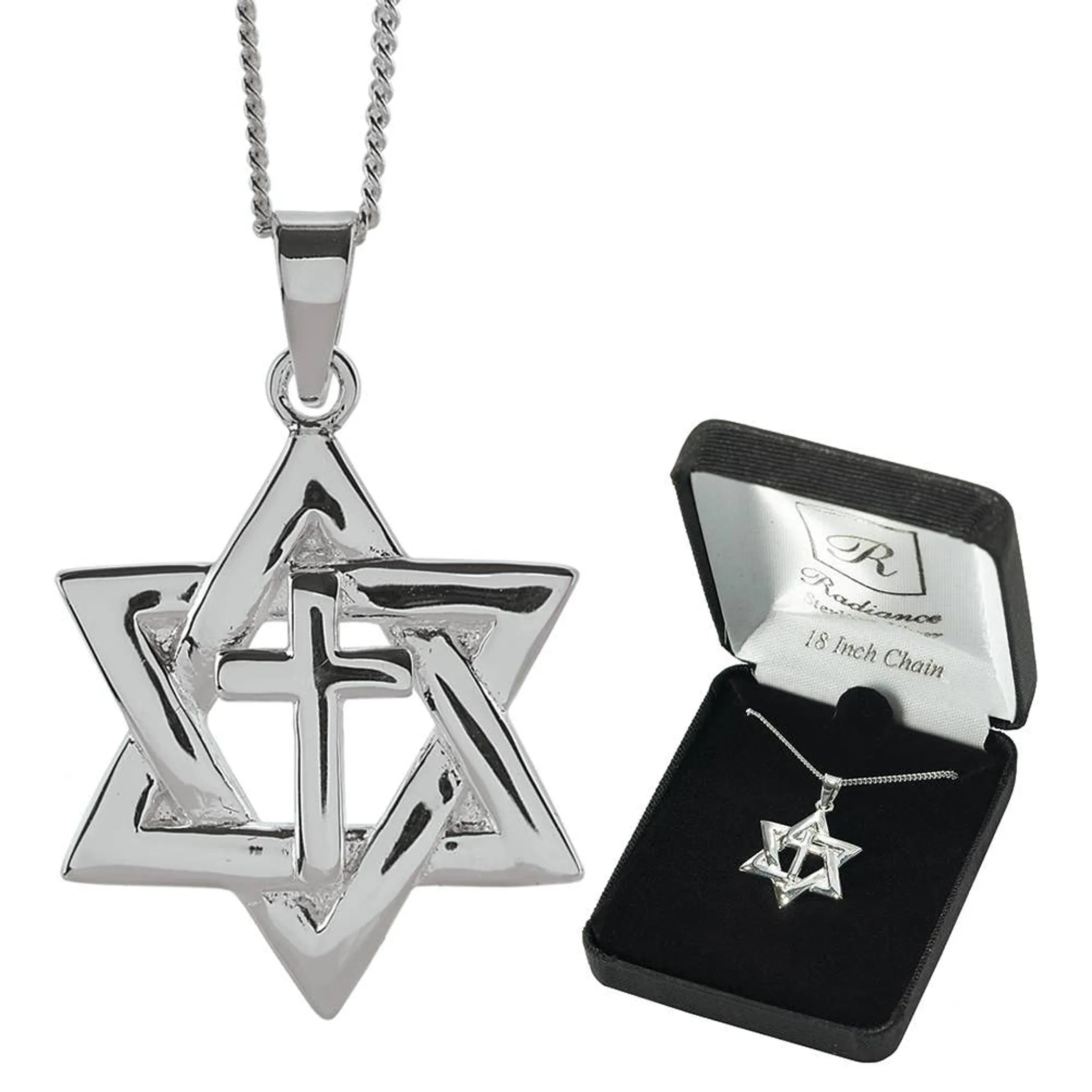 This Handsome Necklace Brings To Mind The Jewish Background Of Jesus, With A Star Of David Framing A Simple Box Cross.
