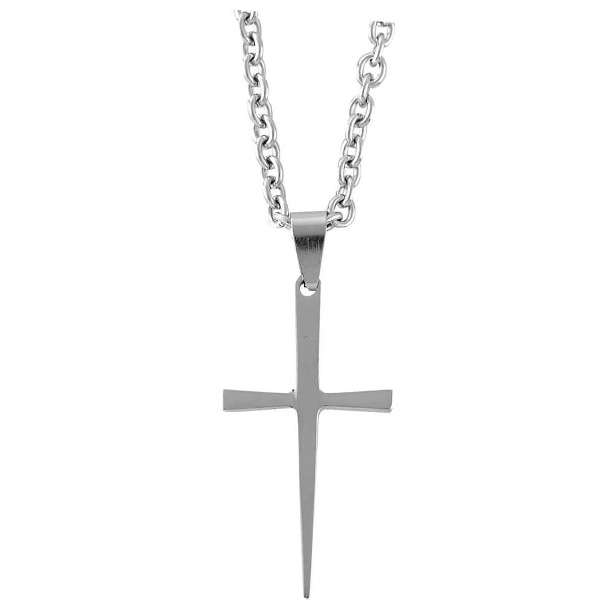 Men'S Stainless Steel 1 1/2' Taper Cross Necklace On Stainless Steel 24' Chain